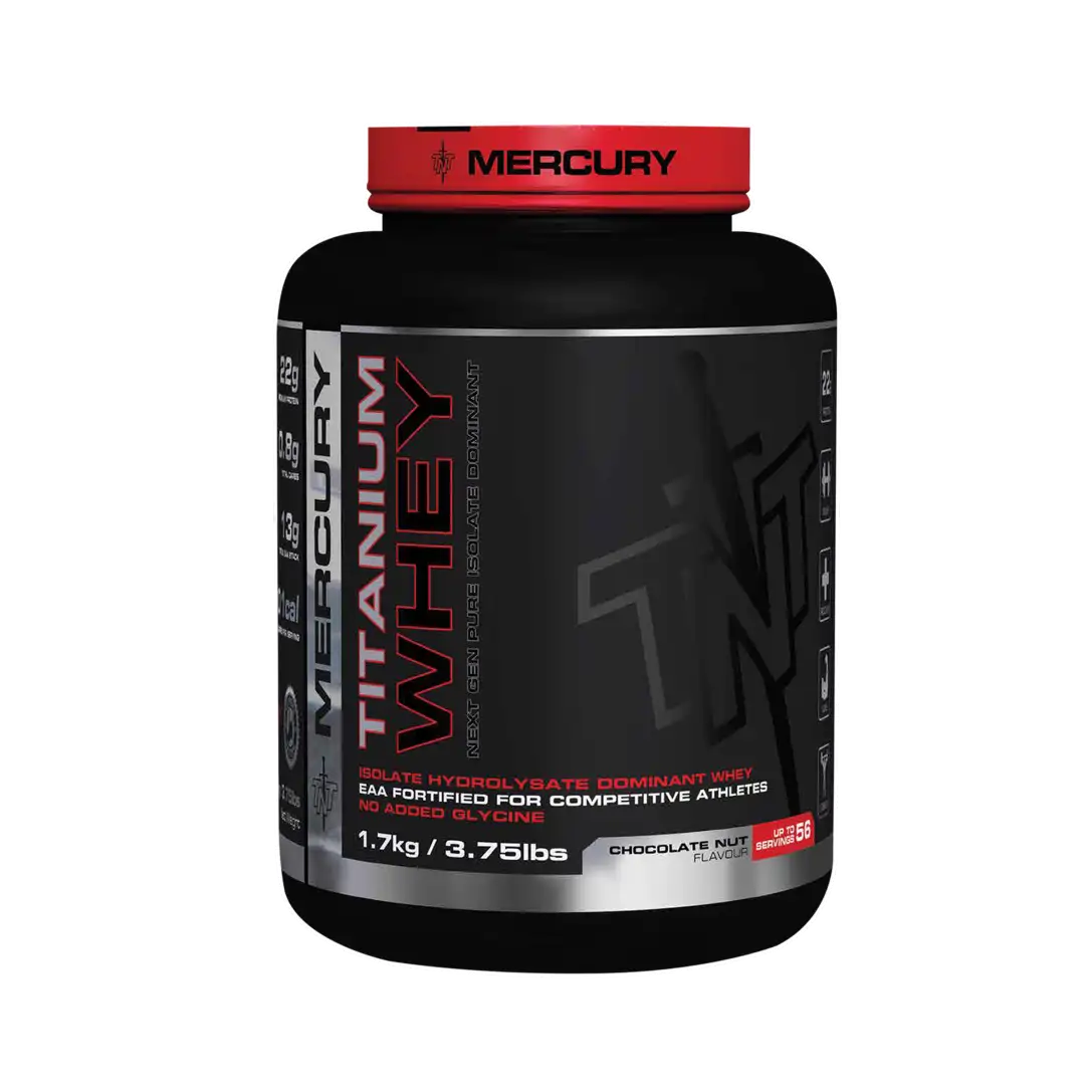 TNT Mercury Titanium Whey is a premium whey protein supplement, featuring a dominant blend of whey isolate and hydrolysate. Fortified with essential amino acids, including BCAAs, this formula is crafted to enhance muscle repair and performance for competitive athletes seeking superior whey protein benefits.